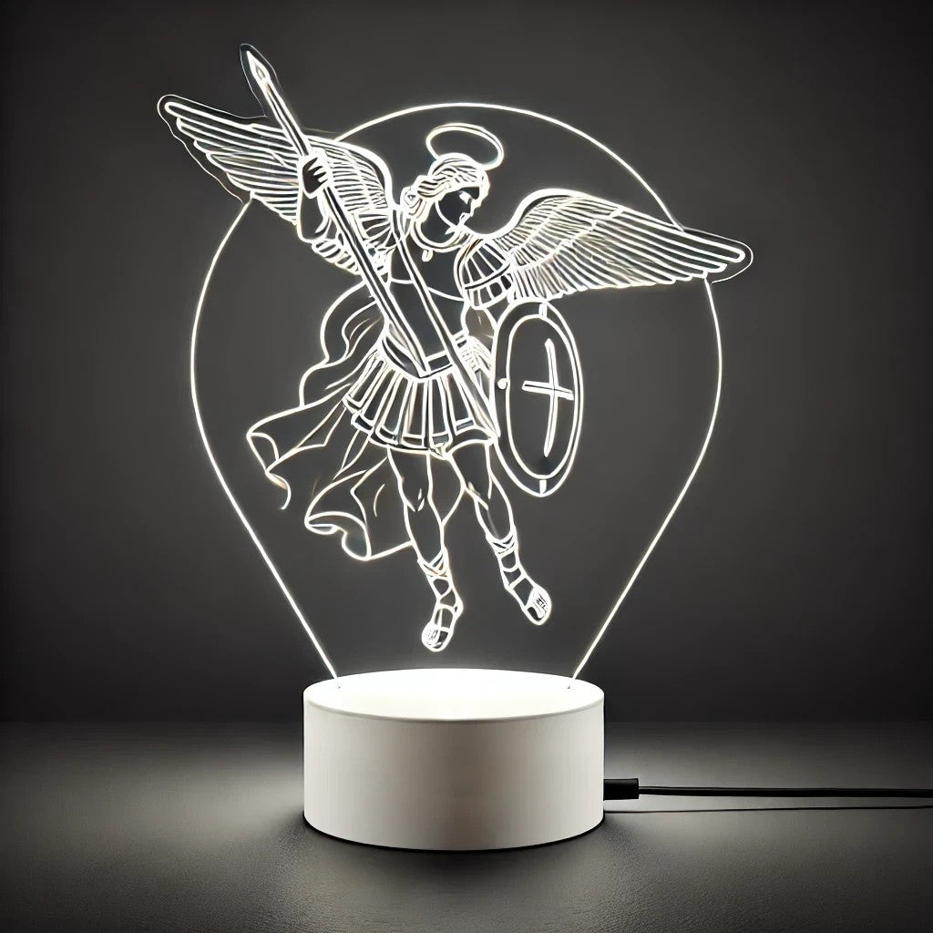 Luminária de Anjo Miguel Arcanjo e Anjo com Asas Abertas em Acrílico Cristal Luminoso Cristal®